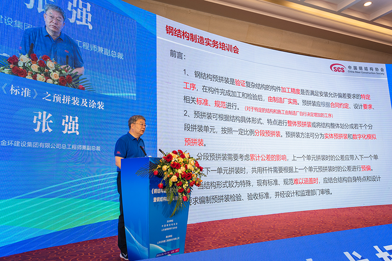 鋼結(jié)構(gòu)加工制造工藝金環(huán)建設集團有限公司總工程師、副總裁張強講授《鋼結(jié)構(gòu)制造技術(shù)標準》預拼裝、涂裝