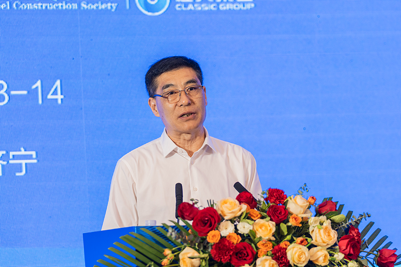 中國鋼結(jié)構(gòu)協(xié)會副會長、山東省鋼結(jié)構(gòu)行業(yè)協(xié)會副會長、山東經(jīng)典重工集團股份有限公司董事會主席苗樹文致辭