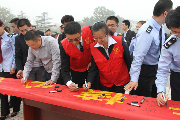 經典集團組織志愿者參加兗州區(qū)弘揚社會正能量踐行核心價值觀暨千名志愿者啟動儀式