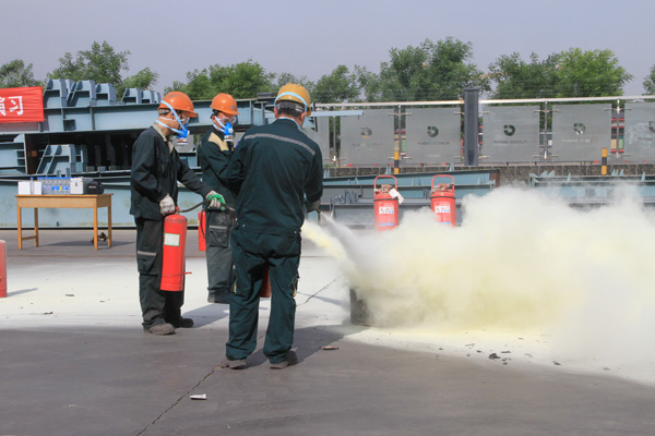演習前,公司董事長苗樹文作了動員講話,對演習活動進行了部署。伴隨著消防警報響起,演習正式開始。消防應急救援隊立即集合,全副武裝到達指定地點,完成疏導交通和消防警戒,建立了應急通訊,集團領導下達救援命令后,一組救援人員手持干粉滅火器對準火源根部由近及遠進行掃射,迅速撲滅了火苗,二組救援人員使用高壓水槍對火源進行噴射,同樣達到了滅火的目的。演習結束后,區消防大隊趙怡然隊長對演習進行了指導點評。總經理杜福生對消防演習進行了總結,對消防安全工作提出具體要求。
