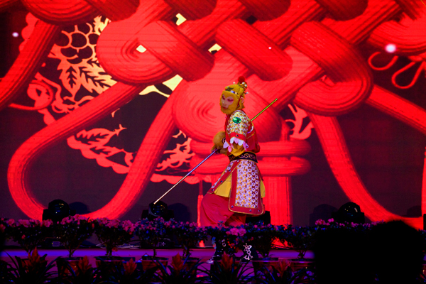 文藝演出在舞蹈《金猴鬧春》中拉開了帷幕,表演者把美猴王孫悟空的形象塑造得惟妙惟肖,帶給觀眾猴年新春祝福。魔術《魔幻世界》、京劇《變臉》、山東快書、李玉剛反串等節目無不令現場觀眾拍手叫好。舞蹈《綻放》《sugarfree》以優美的舞姿、嫻熟的配合跳出了年輕人的活力與激情。歌曲《喜事多》《越來越好》《相親相愛一家人》通過優美的旋律,唱出了經典人的心聲。來自本山傳媒公司的東北二人轉小沈龍團隊的精彩表演成為演出的一大亮點,他們通過夸張、幽默、生動的表演,贏得了臺下一陣陣喝彩聲,特別是小沈龍的臺上臺下互動,把歡聲笑語新年祝福帶給了現場觀眾將整臺演出推向了高潮。