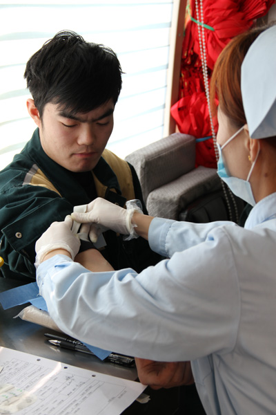 經(jīng)過閱讀學(xué)習(xí)獻(xiàn)血基本常識(shí),填寫登記表,例行體檢幾個(gè)環(huán)節(jié)后,志愿者們按順序登上了獻(xiàn)血車。他們?cè)讷I(xiàn)血時(shí)個(gè)個(gè)積極勇敢,情緒穩(wěn)定,臉上洋溢著自豪的笑容,獻(xiàn)血結(jié)束后,在現(xiàn)場(chǎng)領(lǐng)取了濟(jì)寧市中心血站發(fā)放的無(wú)償獻(xiàn)血證。本次獻(xiàn)血活動(dòng)有166名職工自愿報(bào)名參加,其中趙康、吳振興等志愿者更是有多次無(wú)償獻(xiàn)血的經(jīng)歷。