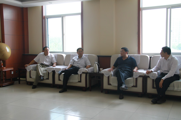 兗州市委常委宣傳部部長初建偉、市教育局局長張維國、兗州團市委書記徐晉、苗董與教育局教職工洽談